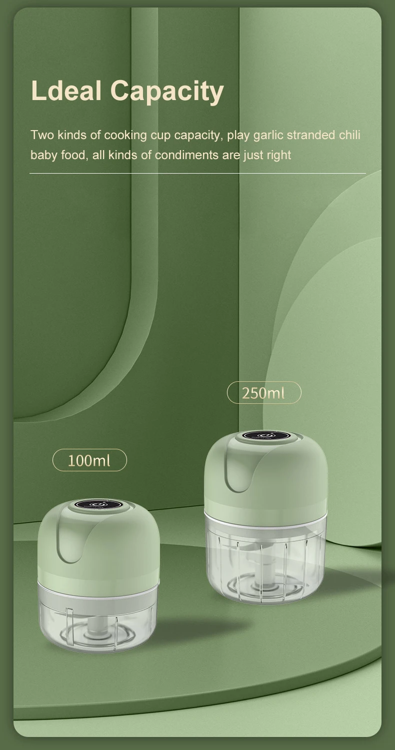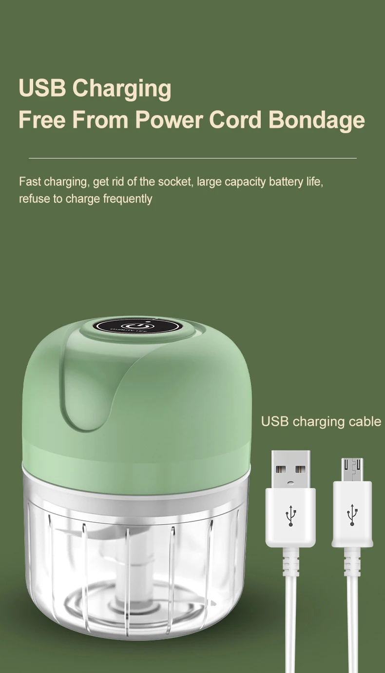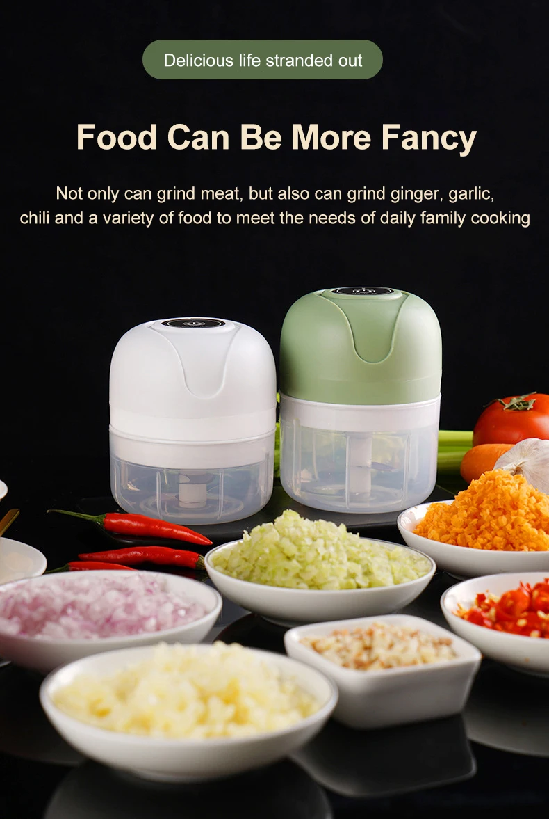 Elektrischer 250 ml Mini Lebensmittelhacker Mixer, drahtloser tragbarer elektrischer Knoblauchhacker Obst Gemüse Zwiebel - USB Wiederaufladbarer